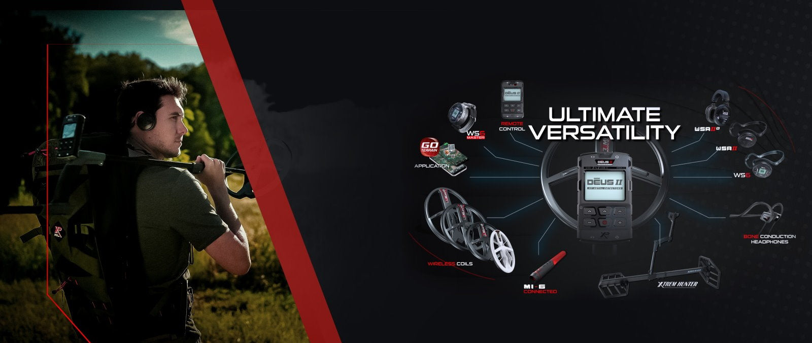 Metalldetektor XP DEUS II 22cm Spule mit Funkkopfhörer WSA2 XL sowie MI-6 Pinpointer & XP Rucksack als Gratiszugabe -